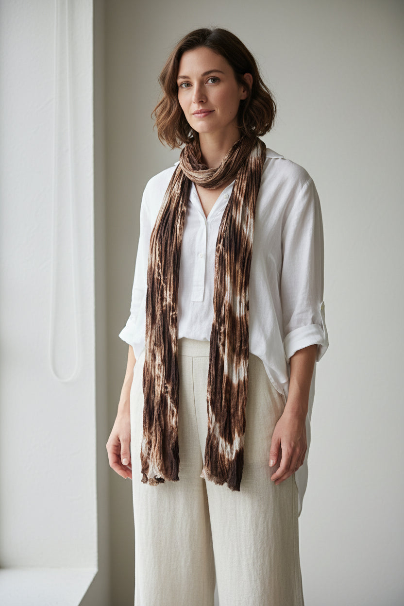 Wrap yourself in artisan luxury with this hand-dyed cotton gauze scarf, a wearable work of art created in small batches with meticulous attention to color and texture. Each piece is individually dyed by hand, ensuring your scarf is truly one-of-a-kind with subtle variations that celebrate the beauty of the handmade process.