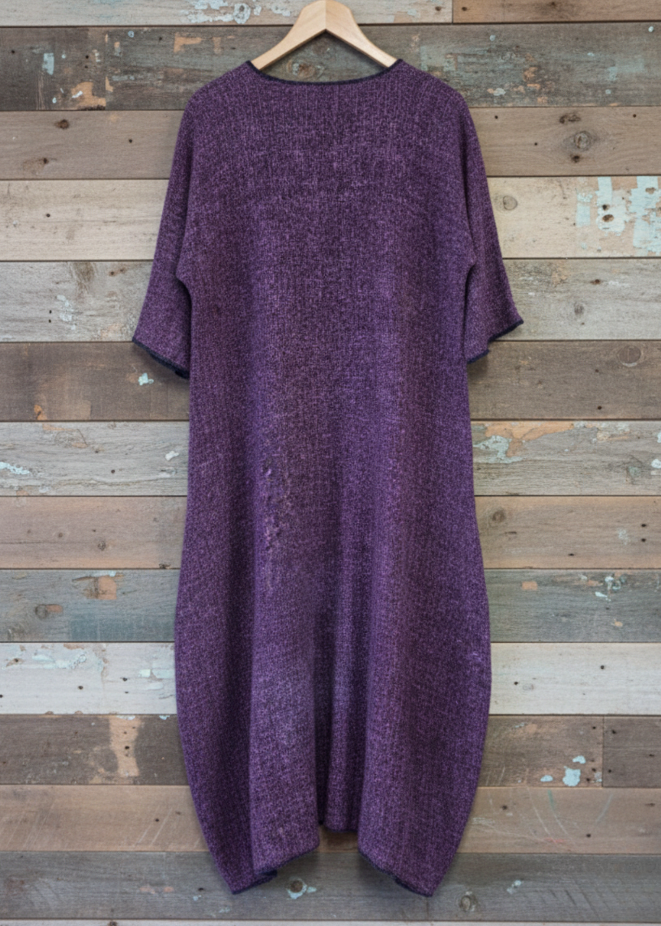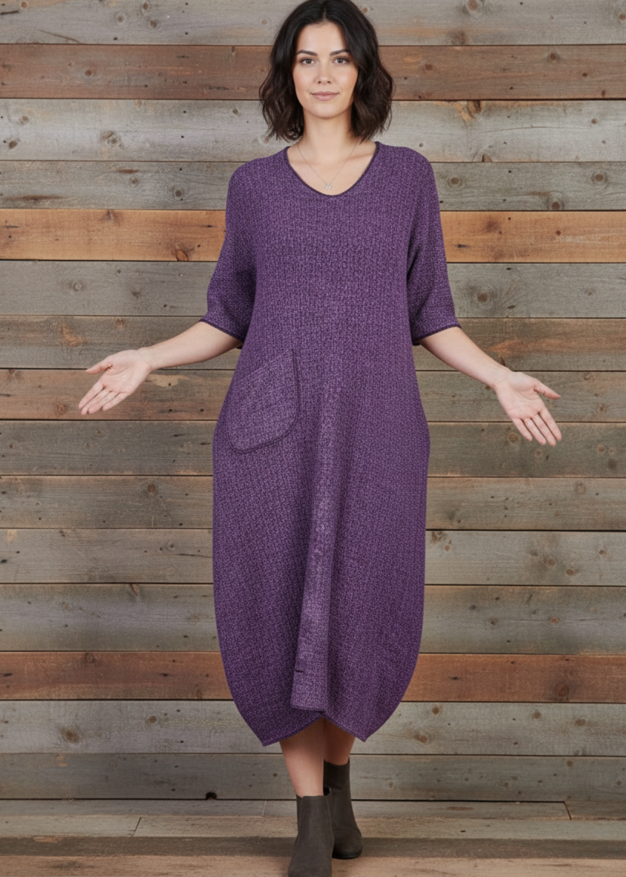 This exquisite handmade dress features hand-dyed silk in a rich purple hue, showcasing artisanal craftsmanship. Its unique balloon silhouette offers a graceful, airy fit that moves beautifully with you. Perfect for those who appreciate one-of-a-kind fashion pieces that blend elegance with creative artistry.